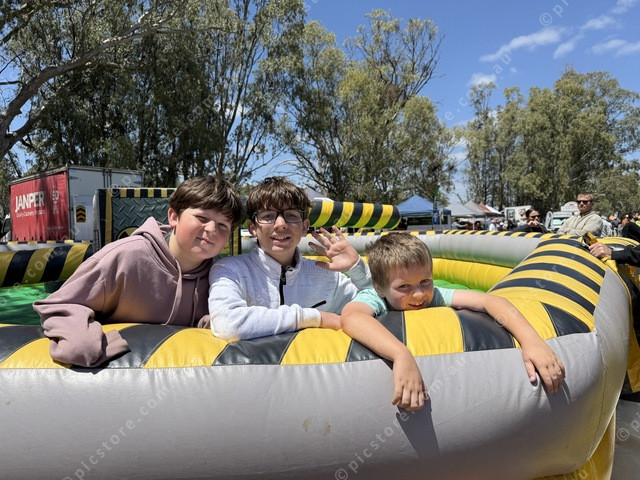 Brock, Brandon, and Jaxon McMillan went for a spin on the Meltdown. Picture: Lochlainn Heley