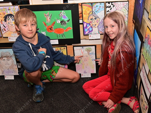 Jordi and Bridie Moore check out some of the colourful artwork. (Mark Liebich: 500360_04