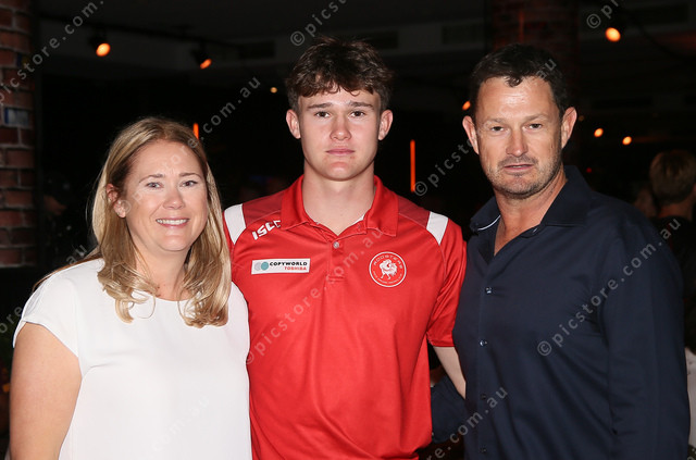 Sam Cumming with his mother and father. Picture: Peter Argent