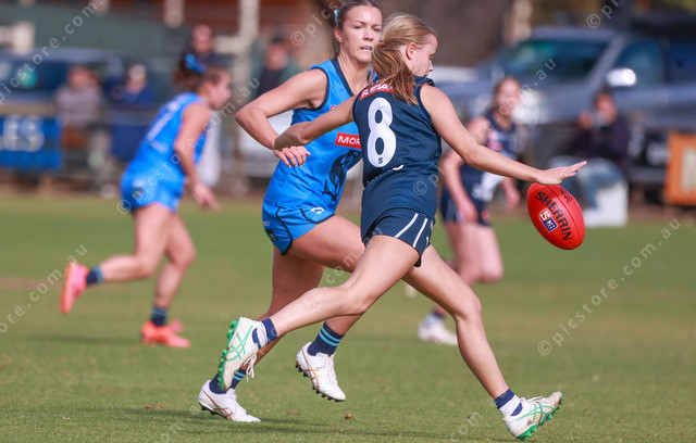 South Adelaide’s Hope Taylor kicks the ball out to the wing at Strathalbyn Oval on Sunday. (Jesse Ehlers: 479025_10)