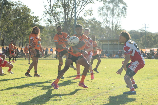 Cherbourg’s Rahcine Doyle offloads. 500593_17