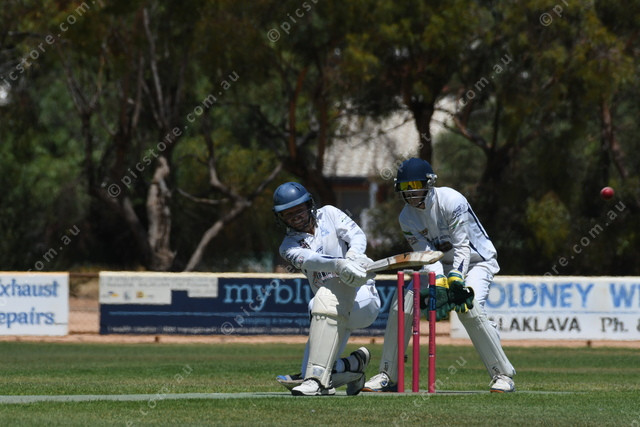 Todd McPharlin smashes his way to 102 runs, including 10 fours, during Saturday’s match at Balaklava. (Lisa Schulz: 458568)
