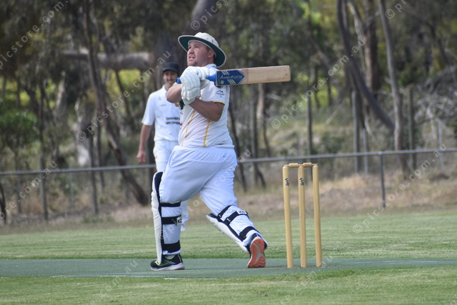 Zach Fielding watches as he sends the ball over the boundary for six. (517792)