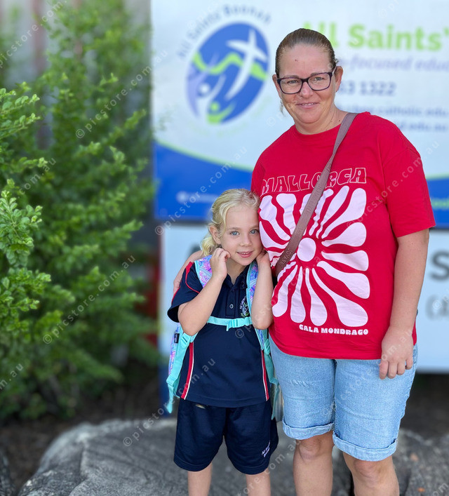 Preppie Maddison Latimer and mum Nicole Vogel. Maddison said she was excited for school. (Jess Leis: 531309_02)