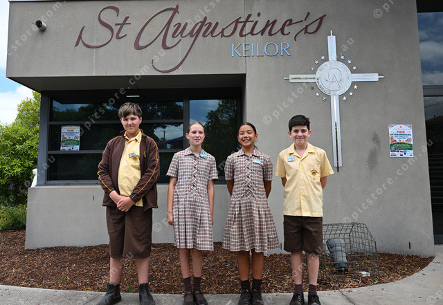 St Augustine’s Primary School is hosting a fair. Pic of school captains, year 6 students: Max, Evie, Ella and Will. (Damjan Janevski). 532073_03