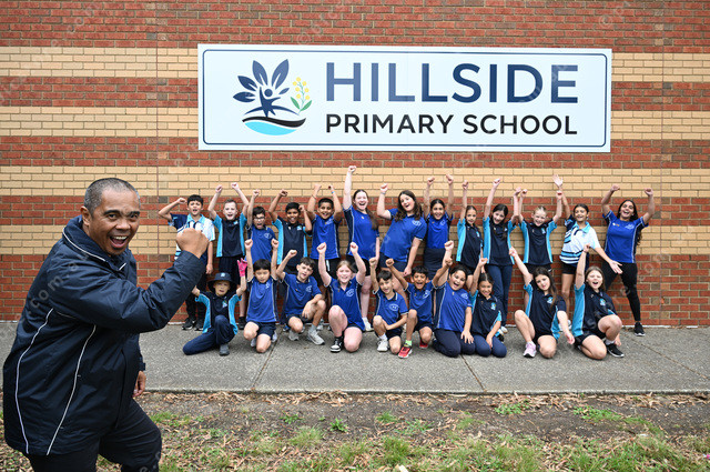 Hillside Primary School is hosting a twilight fete. Pic of the assistant principal Henry Nicdao with the students. (Damjan Janevski). 537804_04