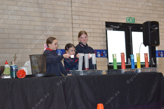 Mulga Street Primary School students Bridgette, Elliot and Jorja help out.