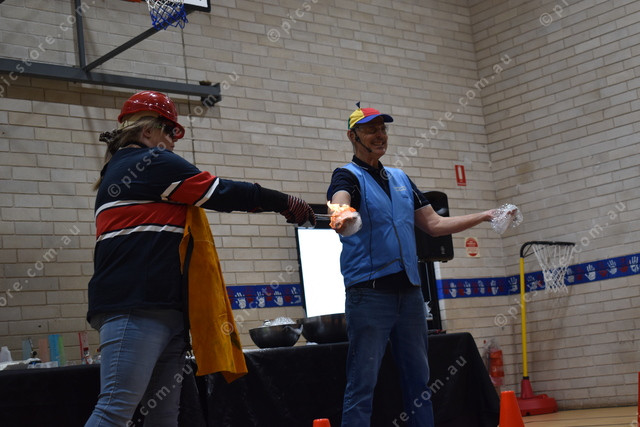 Georgia Revill helped Sci Fi Bri out during the demo at Mulga Street Primary School.