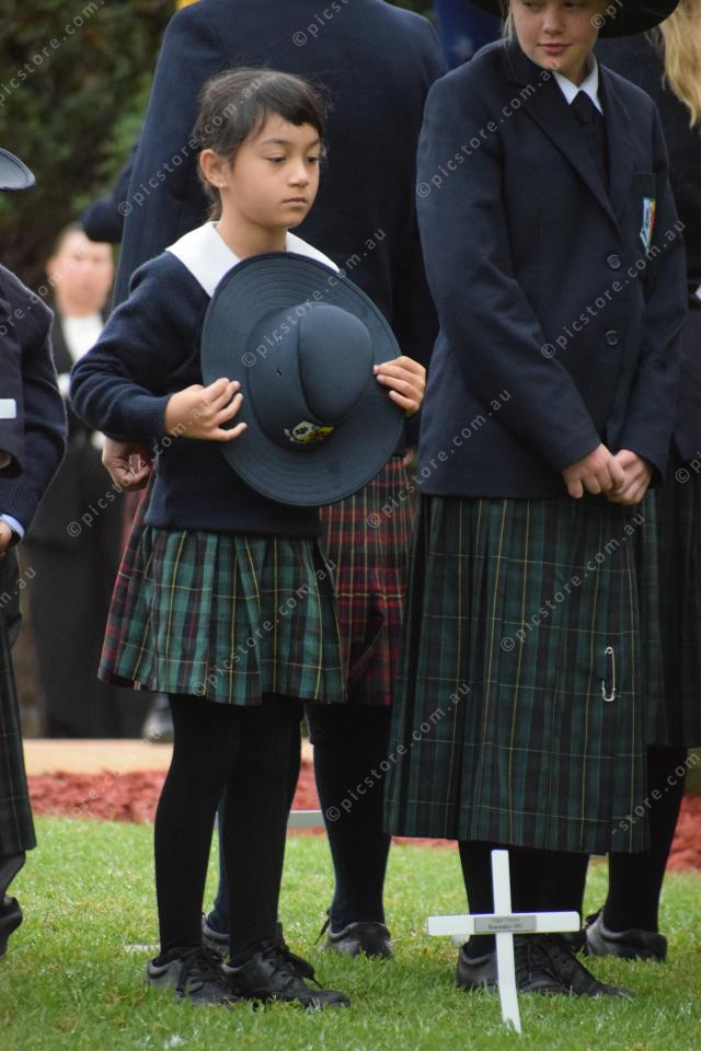 Students removed their hat as they laid a cross for former students who have given their life in war.