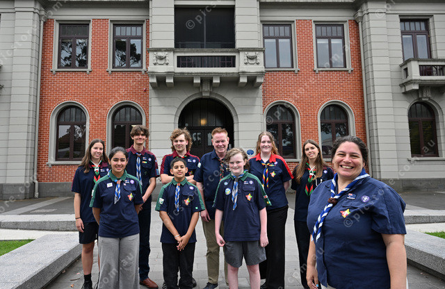 Pic of the new Chief Commissioner Scouts Victoria, Daniella Taglieri OAM, with some scouts outside the Williamstown Town Hall. (Damjan Janevski). 528891_06