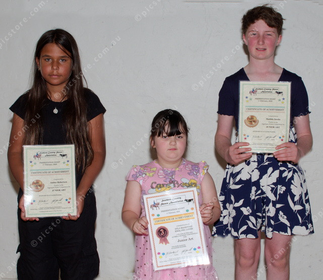 Junior Art finalists Amber Robertson, Ayla Basford England-Jones and Matilda Jacobs.