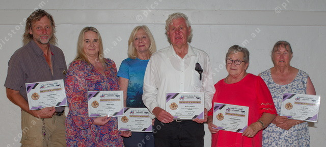 Cookery finalists Vaughan Wilson, Deidre Ryder, Barbara Mitchell, Robert Addison, Cherrol Wundersitz and Judy Peach.