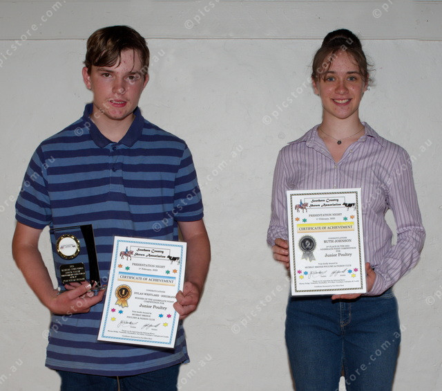 Junior poultry winner Dylan Westlake-Siegmann and runner-up Ruth Johnson.