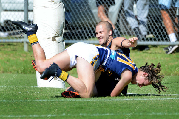 RESERVES. Hayden McLardy (14 Berwick) happy after his goal, Luke Marchetti (21 Beac) on top. 179621_01