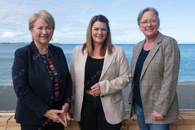 Senators Barbara Pocock, Sarah Hanson-Young, and Karen Grogan at the Senate inquiry hearing in Victor Harbor into the algal bloom. Absent: Senator Charlotte Walker. (Dani Brown: 503243_01)