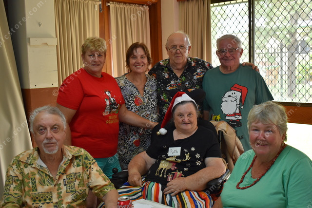 (Front) Martin Castel, Ruth Watts, Jacquee Castel, (back) Jill Newcon, Rita Davey, Bill Ogle, Michael Holland joined forces to celebrate the christmas spirit. (Lucy Waldron: 448468)