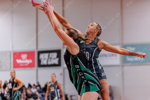 BLGNA’s Amelia Bennett and WENA’s Chloe Ettridge challenge for a high ball