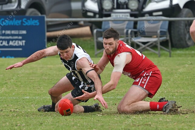Jordan Clements and Pat Binyon crawl towards the loose ball. (501896_07)