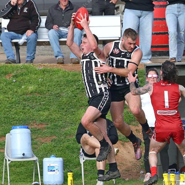 Riley Thorne holds onto a strong mark at the front of the pack. (501896_12)