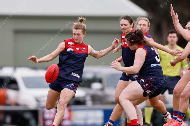 Willaston’s best-on-ground Lauren Smith clears from halfback. (501579_02)