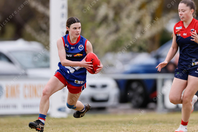 Rebekah Scharkie runs the ball out of Barossa District’s backline. (501579_06)