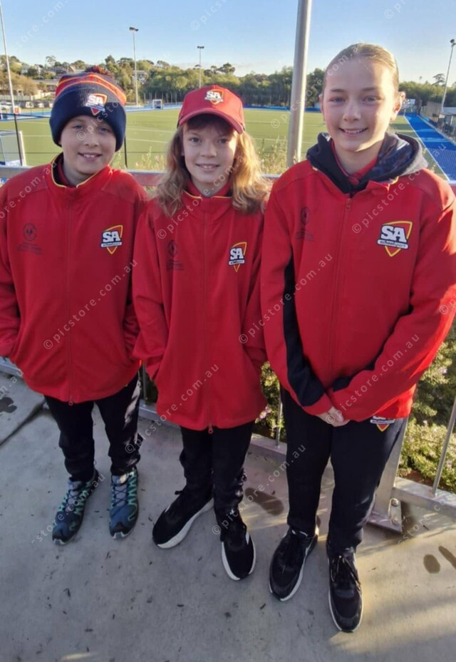 Gawler’s Reuben Batki, Ernie Darling and Taya Barrett representing South Australia at the under 12 championships.