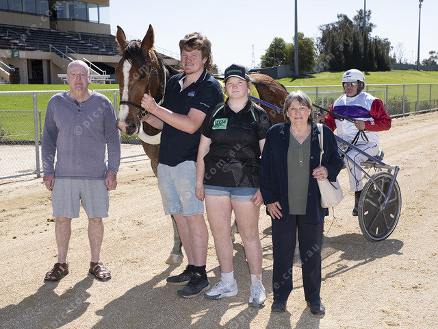 The Brown family celebrates Sammy Barbaro’s win at Globe Derby Park on Monday.