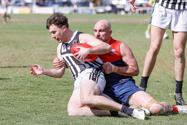 Willaston’s Joshua Waldhuter tackles Brett Dowse. (503650_05)