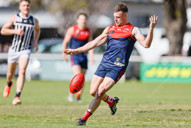Reigning premiership captain Tyson Irlam lowers his eyes for a short pass. (503650_08)