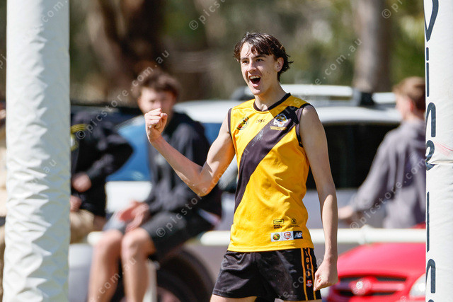 Riley King runs into an open goal for one of his two majors. (503493_04)