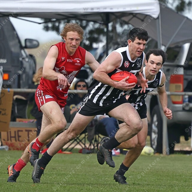 Jordan Clements is pursued by Two Wells’ Ned Seccafien in Seccafien’s 300th game. (505120_02)
