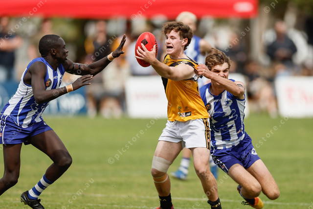 James Starr is swarmed by South’s Biar Deng and Kalan Fowler. (505530_07)