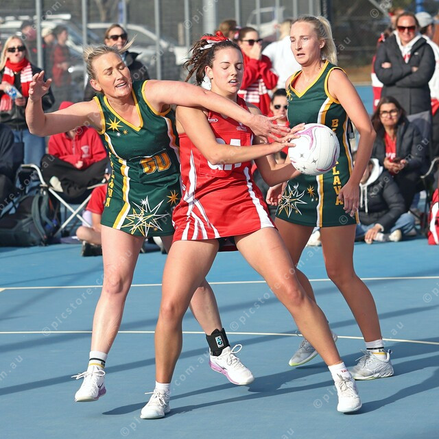 Balaklava’s Bonnie Michael tries to break up the pass intended for Two Wells’ best-on-court Lucy Klingberg. (Michael Slattery: 499869_01)