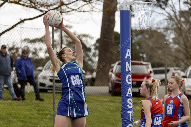 Lanky Angaston shooter Laura Ide uses her length to reel in a high lob. (500341_04)