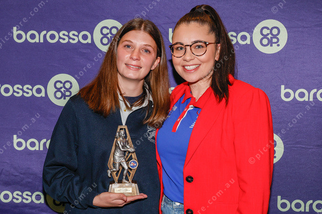 Senior Women’s Best-and-Fairest Tiarna Grovermann with Central District’s Carrie-Anne Mewett. (500444_05)