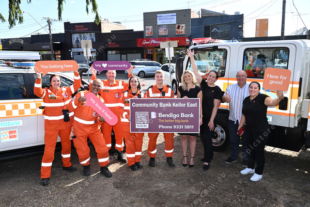 Brimbank SES is brought its rescue truck to the Bendigo Bank’s Keilor East branch to say thanks for a $5500 donation. Photo by Damjan Janevski. 473479_05