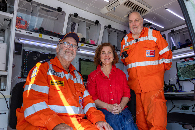 Geoff Deacon SES, Ms Jodie Belyea MP Member for Dunkley and John Murphy SES in the Command Centre.