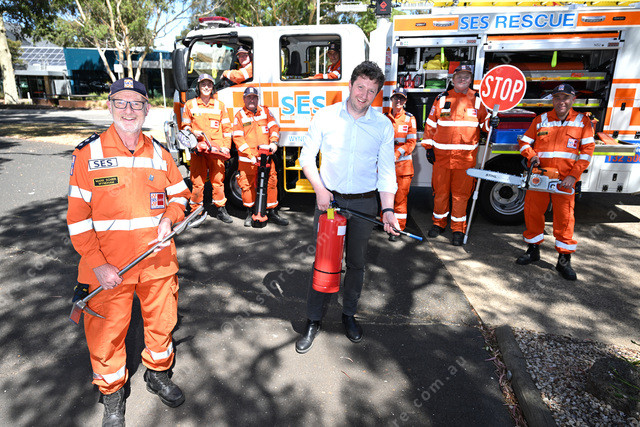 Wyndham SES have received a new truck. Pic of the unit controller Mark Schier (front) with his team and local MP John Lister. (Damjan Janevski). 532035_06