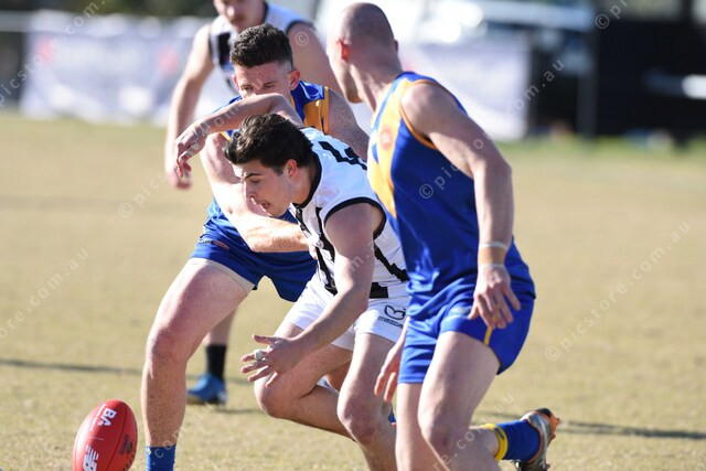 Matt Alister (9 Cranbourne, left), Kyle Lanham (25 Cranbourne, right). Middle is Peter Gentile (5 NW). 485548_08