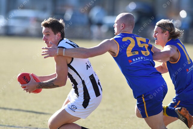 Declan Brown (19 NW) with the ball, chasing is Kyle Lanham (25 Cranbourne). 485548_11