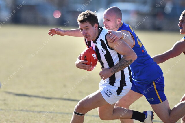 Declan Brown (19 NW) with the ball, chasing is Kyle Lanham (25 Cranbourne). 485548_12
