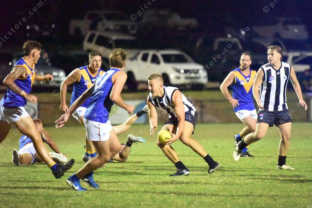 Jake Richardson (14 NW) about to kick a goal. 469859_59