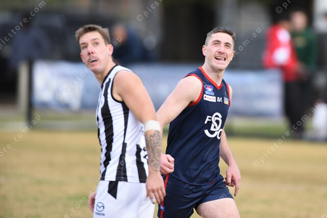 Ben Brunt (20 Springvale Dist) kicks a goal. Left is Declan Brown (19 NW). 482710_23