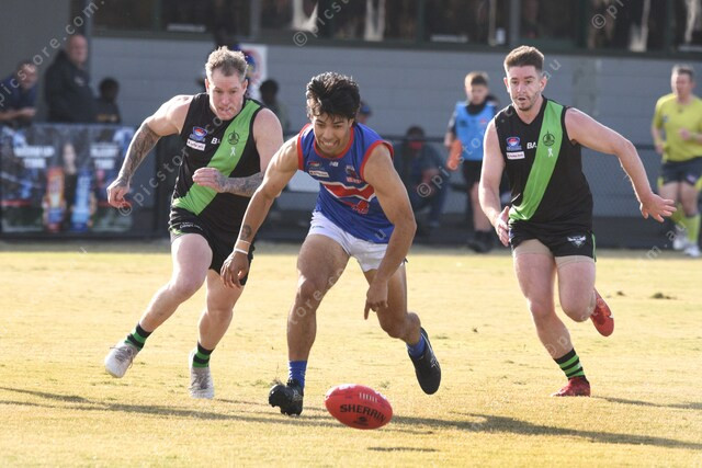 Nathan Ramea (32 Keysborough, middle). Behind left is Shaun Semmens (44 Doveton, middle). 479944_09