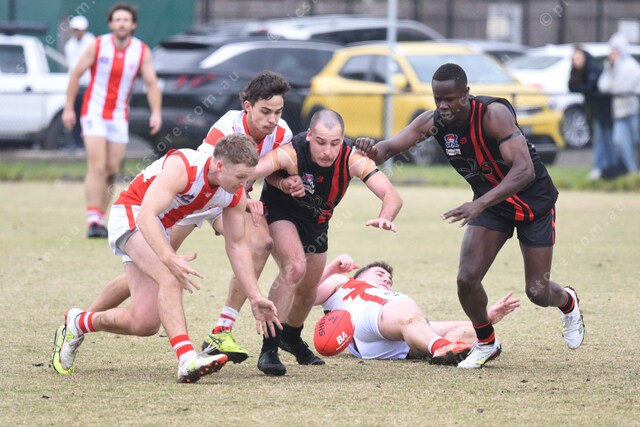Kyle Grigg (59 HP) with the ball. Teammate Emmanuel Jakwot (25, right). 478115_02