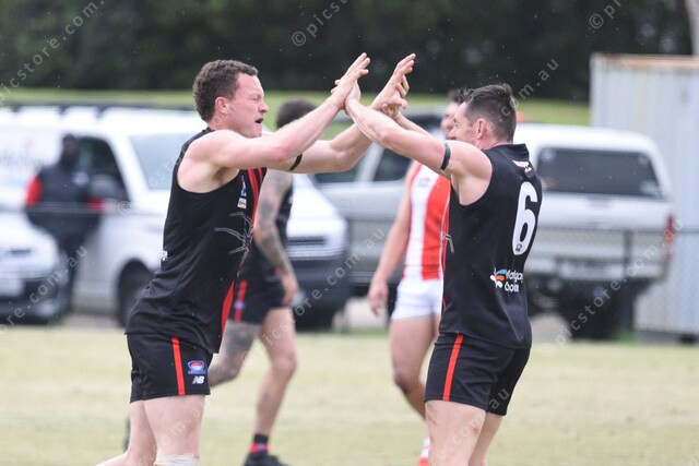 Liam Scott (14 HP, left) after his goal. teammate right, Luke Bull (6).