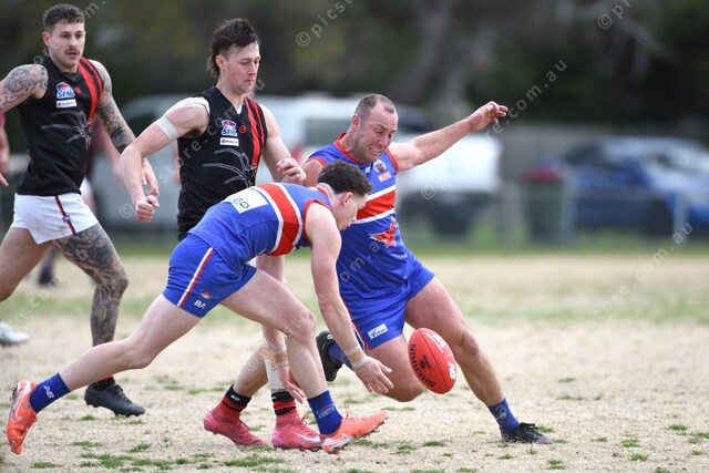 Max Corbyn (7 Keysborough, left) and Brad Doyle (8 Keysborough, right). Behind is Mason Hawkins (15 HP). 496428_25