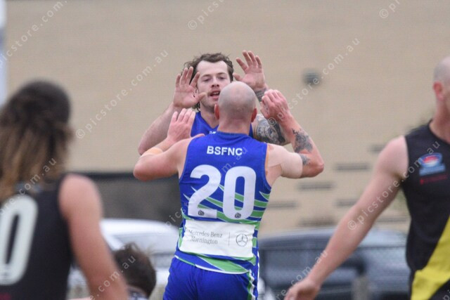 Matt Soutter-Smith (20 Berwick Springs) after his goal. Fellow goal kicker behind is Rhys Fletcher (5). 478113_19