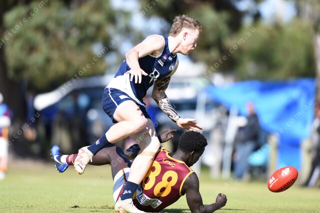 Jarrah Campbell (10 Dandenong West) leaps over Gach Chuol (88 Lyndale). 496427_02