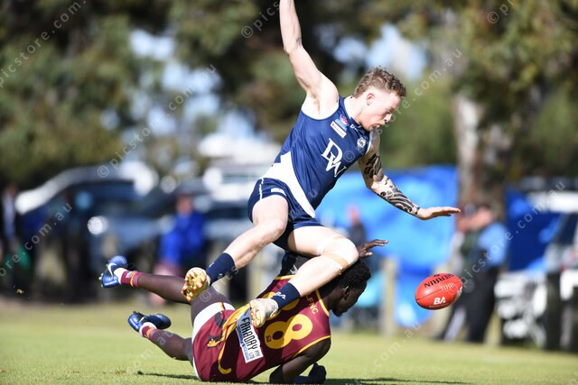 Jarrah Campbell (10 Dandenong West) leaps over Gach Chuol (88 Lyndale). 496427_03